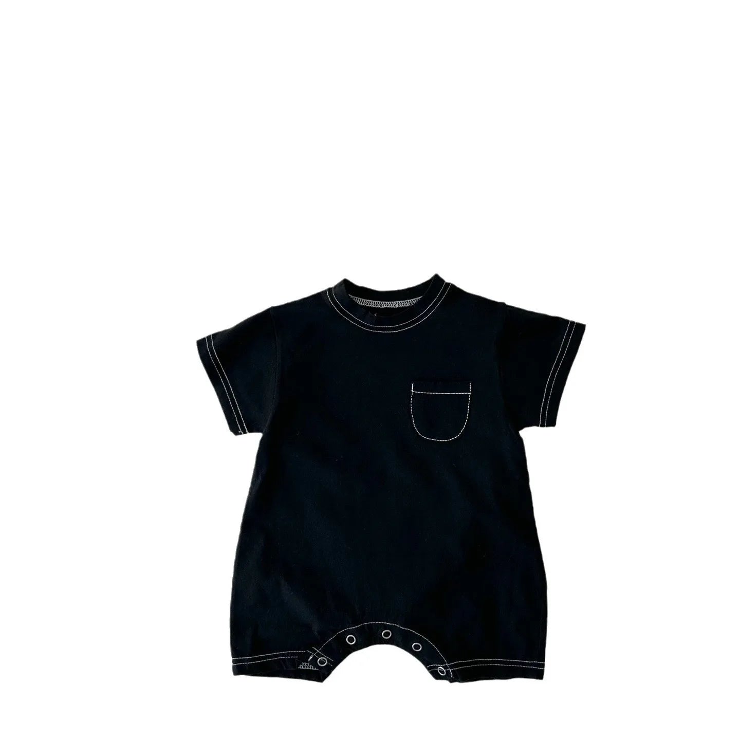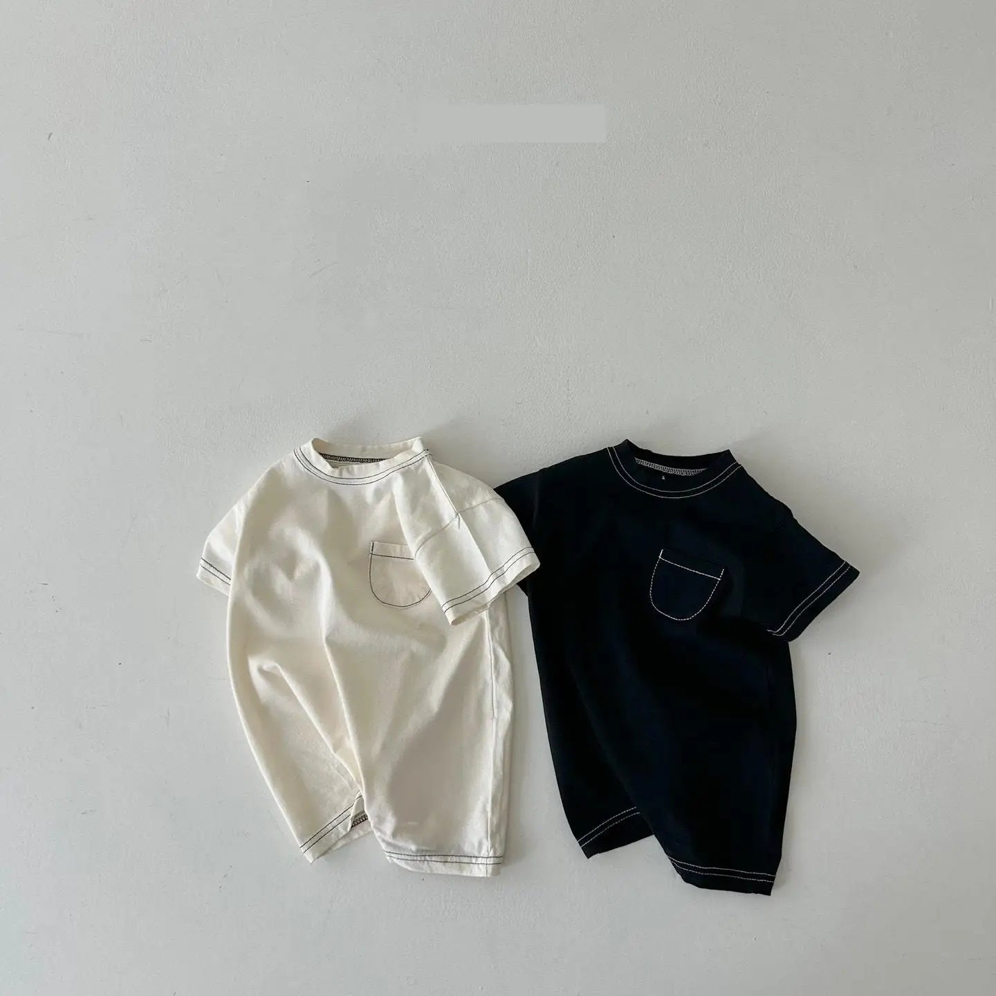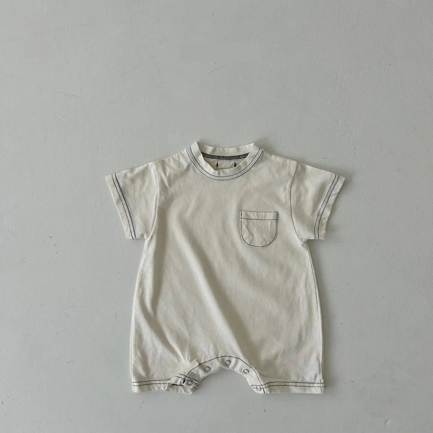 2024 Summer Boy Girl Baby Solid Pocket Short Sleeve Romper Loose Infant Jumpsuit Cotton Newborn Casual One-piece Toddler Clothes
