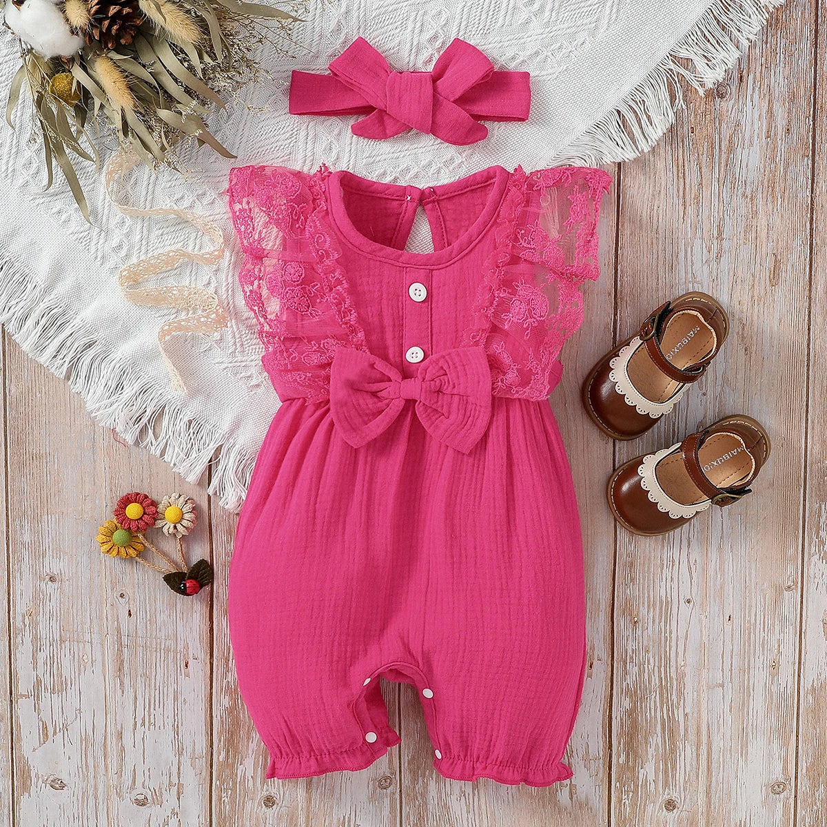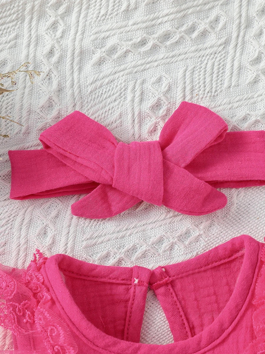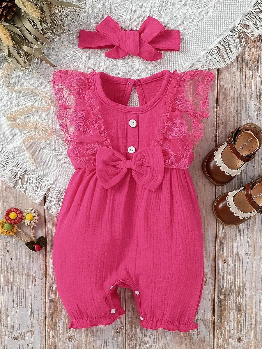 3-24M 2024 Baby girl Cotton Soft cute casual sleeveless summer jumpsuit With Bow +Headband