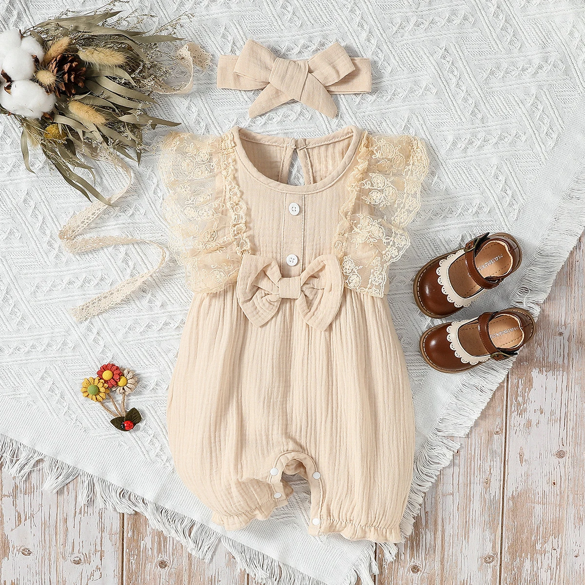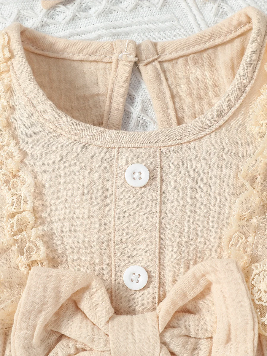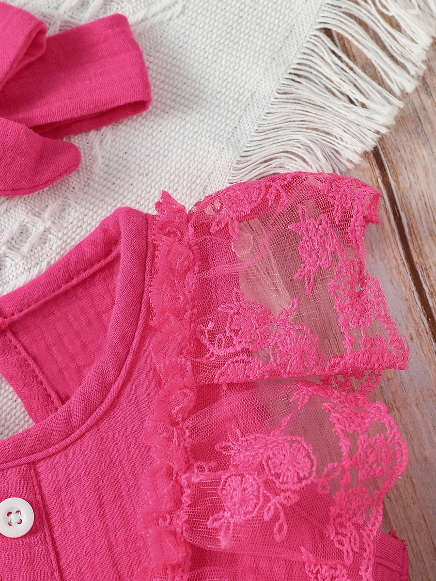 3-24M 2024 Baby girl Cotton Soft cute casual sleeveless summer jumpsuit With Bow +Headband
