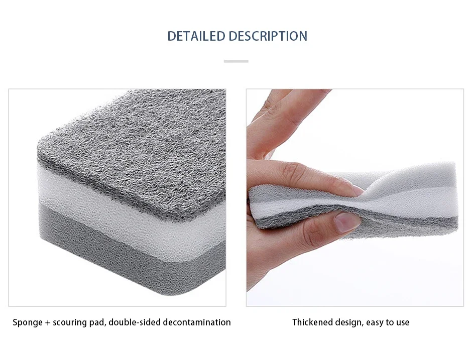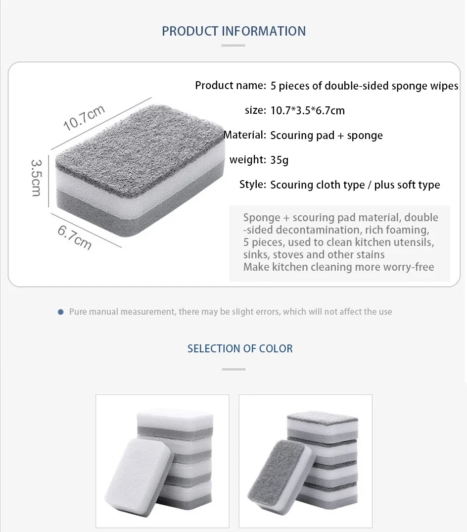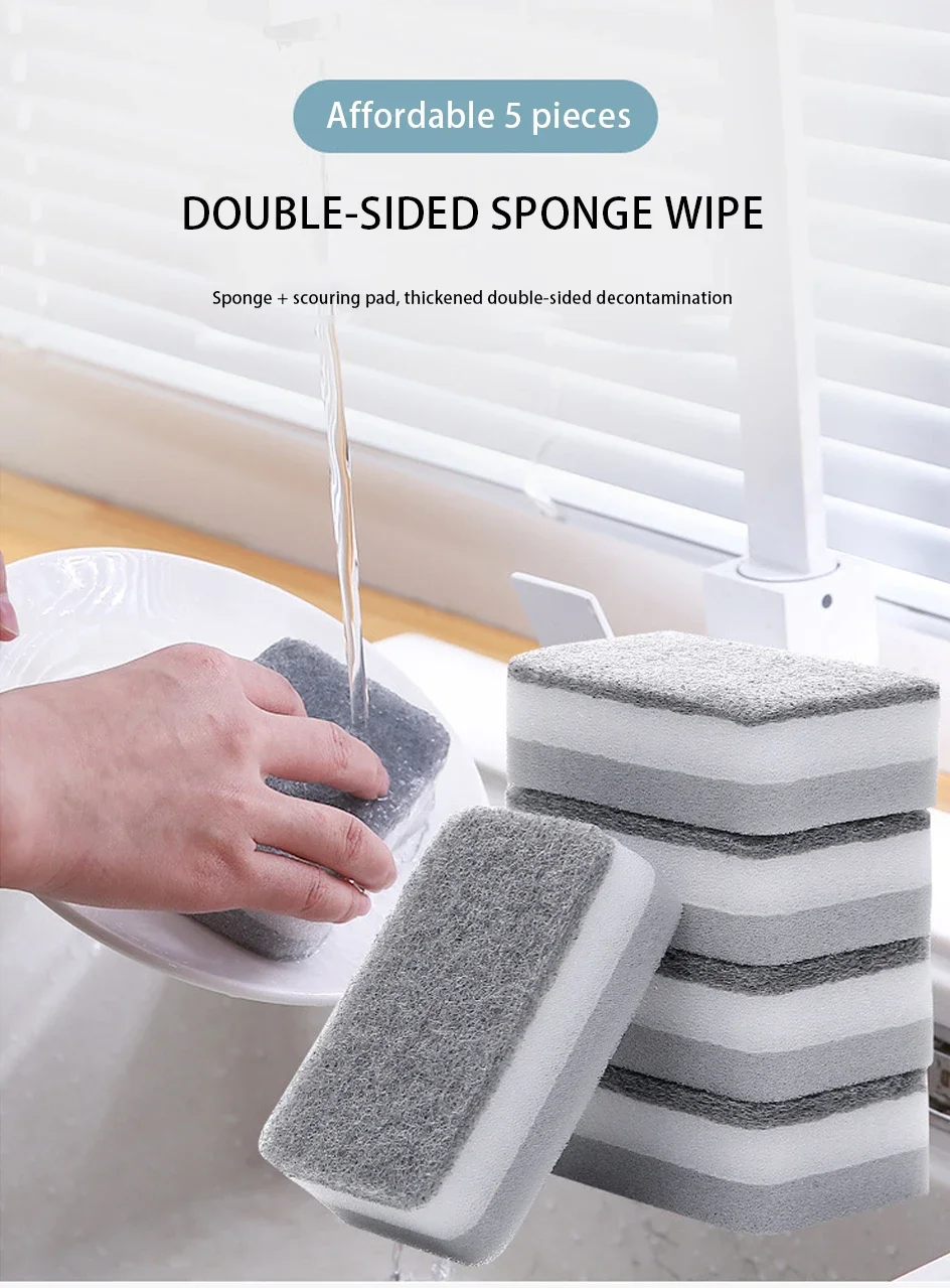 5 Pcs Home Double-sided Sponge Wipe Gray Dirt-resistant Scouring Pad Kitchen Stain Sponge Wipe Professional Cleaning Supplies