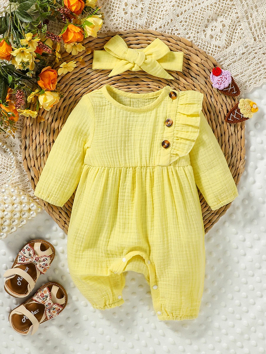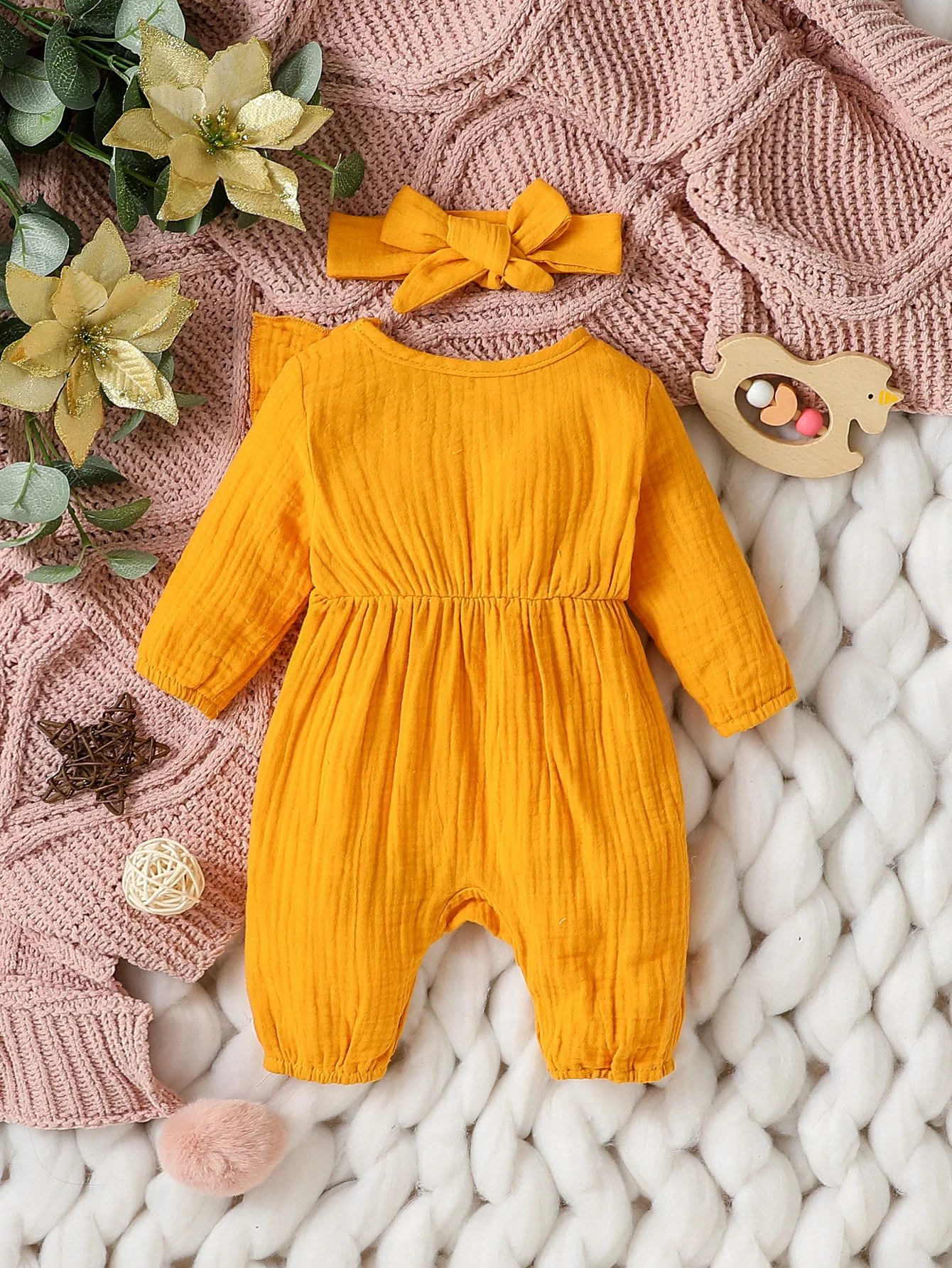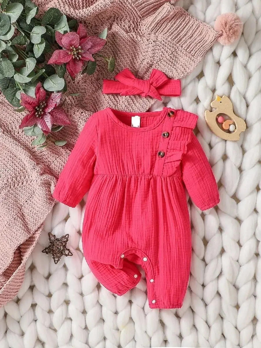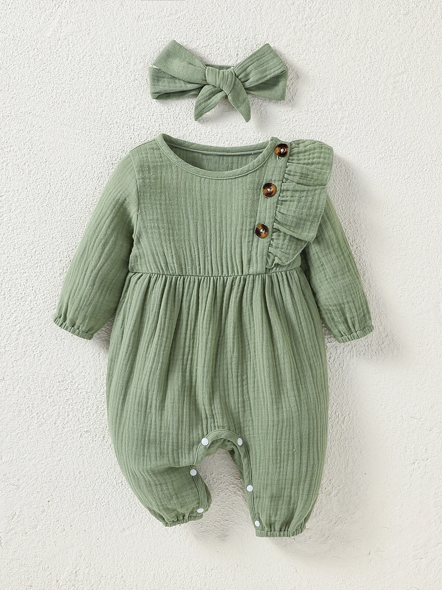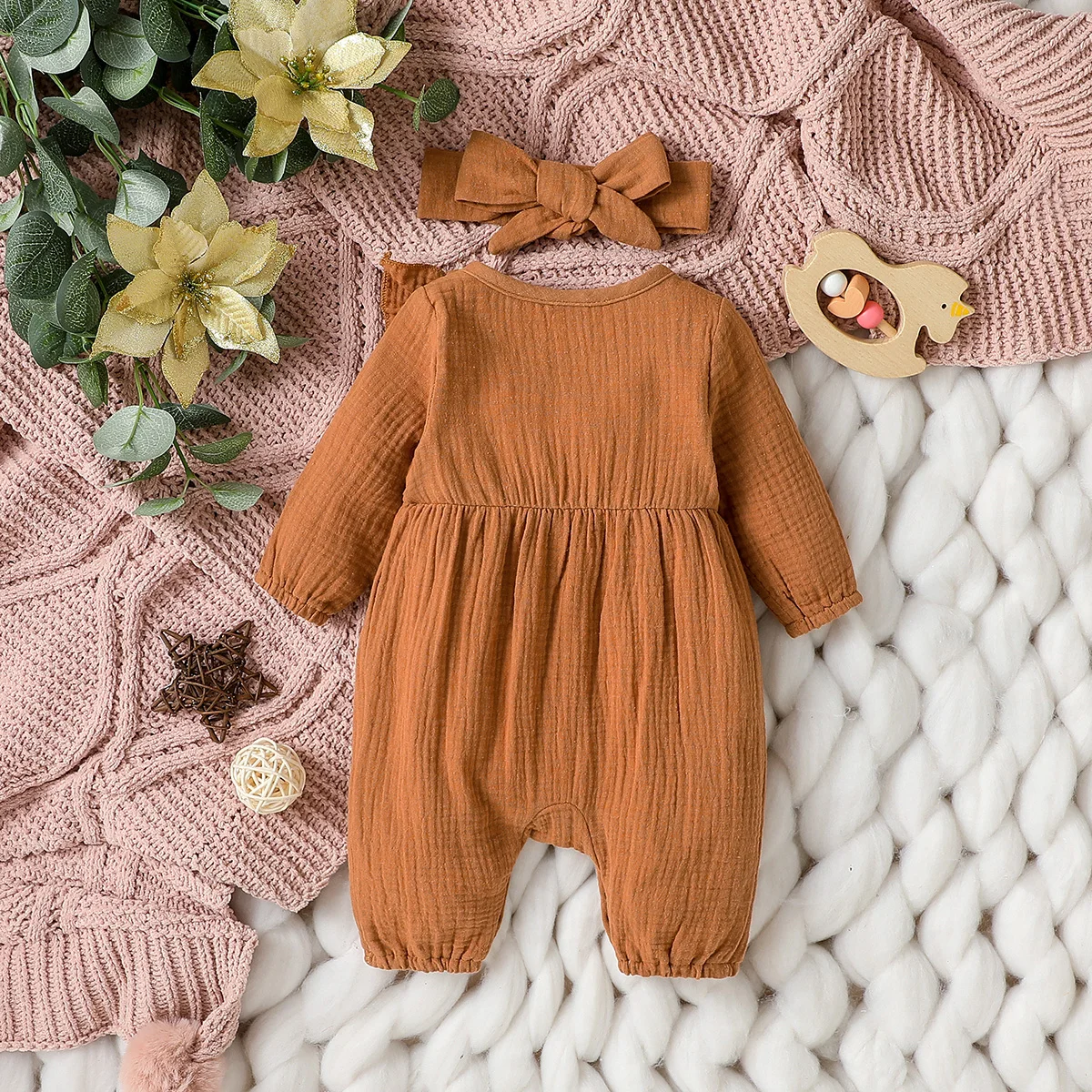 Girls Soild Cotton Long Sleeve With Button Baby Summer&Spring Streetwear Bodysuit