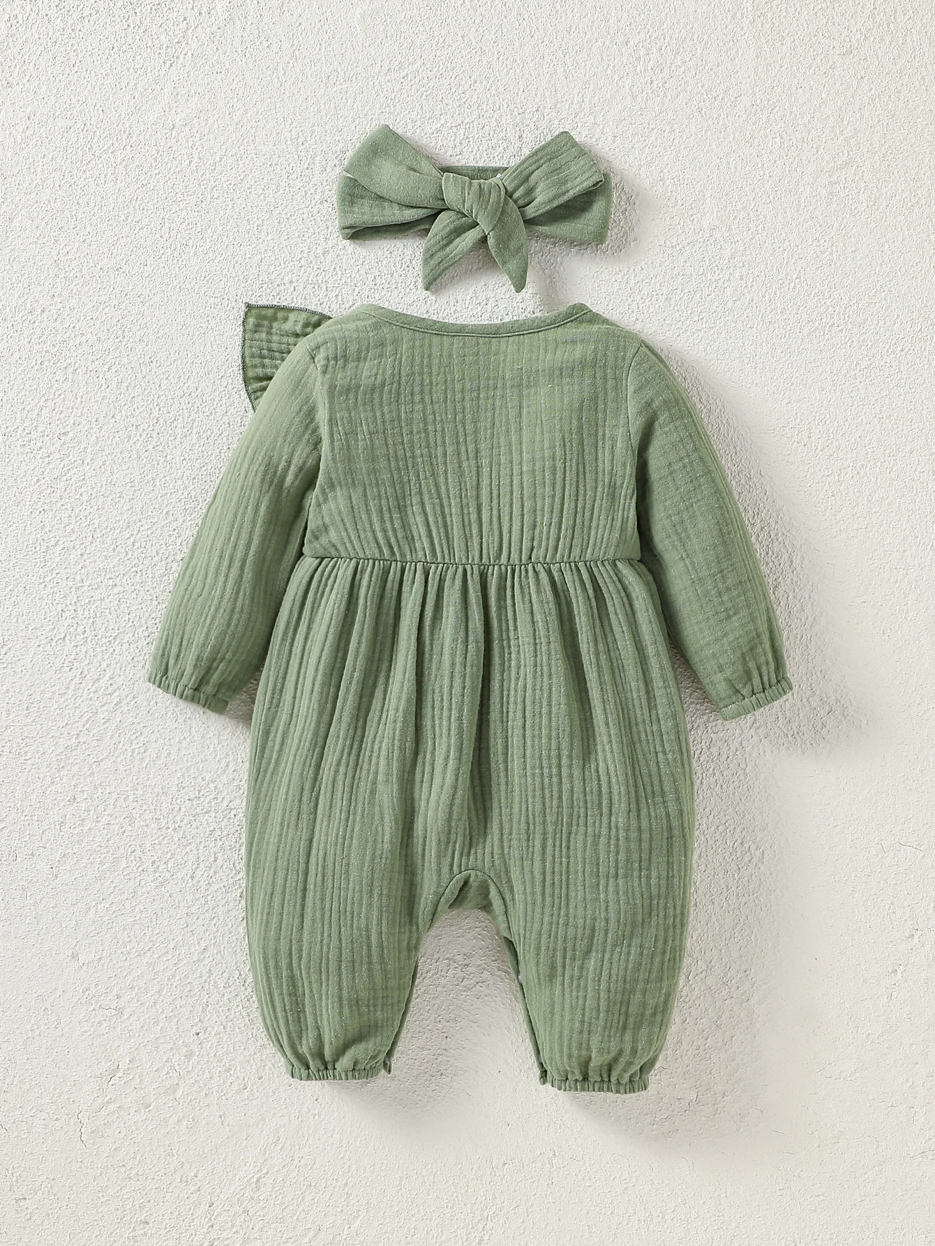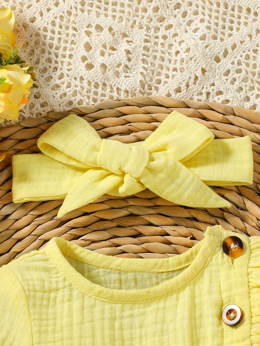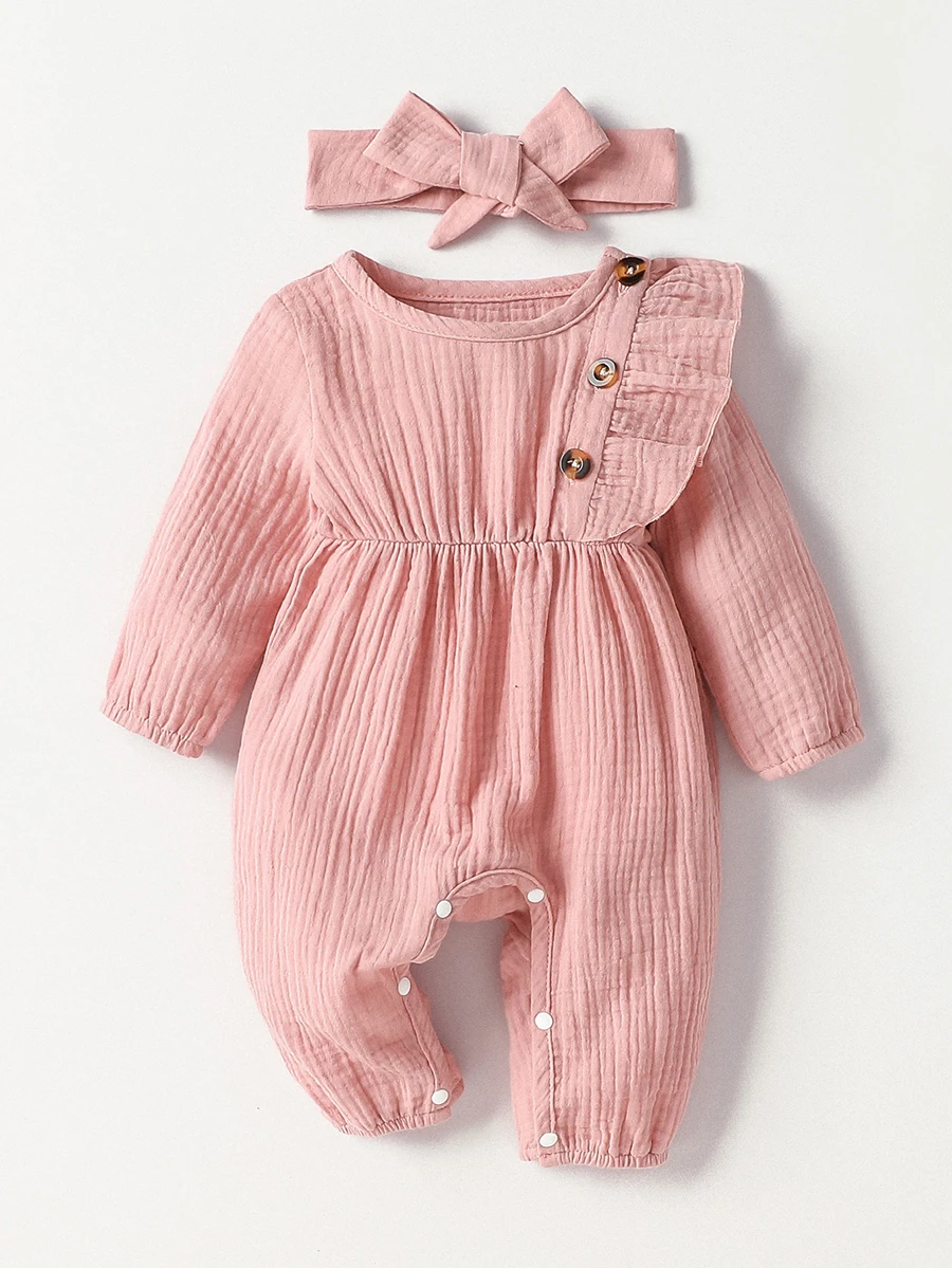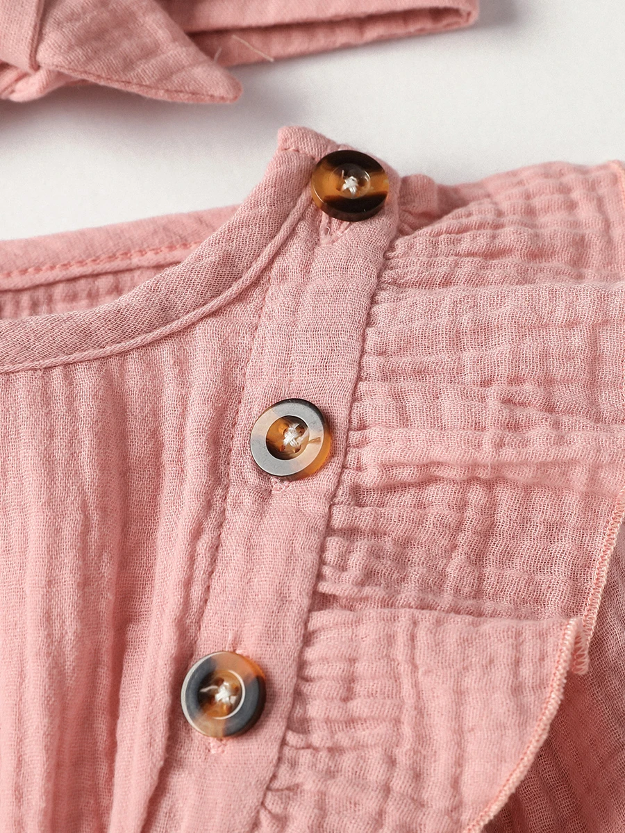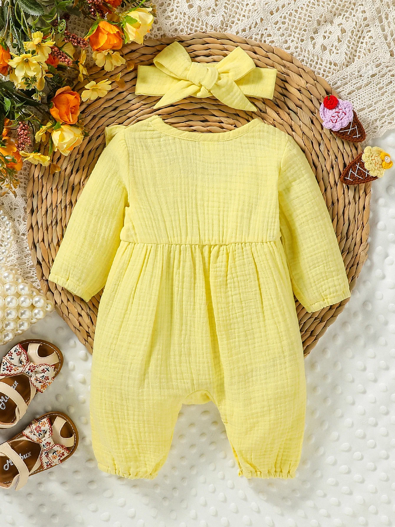 Girls Soild Cotton Long Sleeve With Button Baby Summer&Spring Streetwear Bodysuit