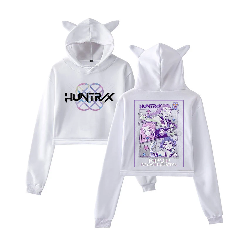 KPop Demon Hunters Cat Ears Long Sleeve Crop Tops Girls Fashion Hoodie Harajuku Streetwear Hoodie Women 2025 Girls Clothing