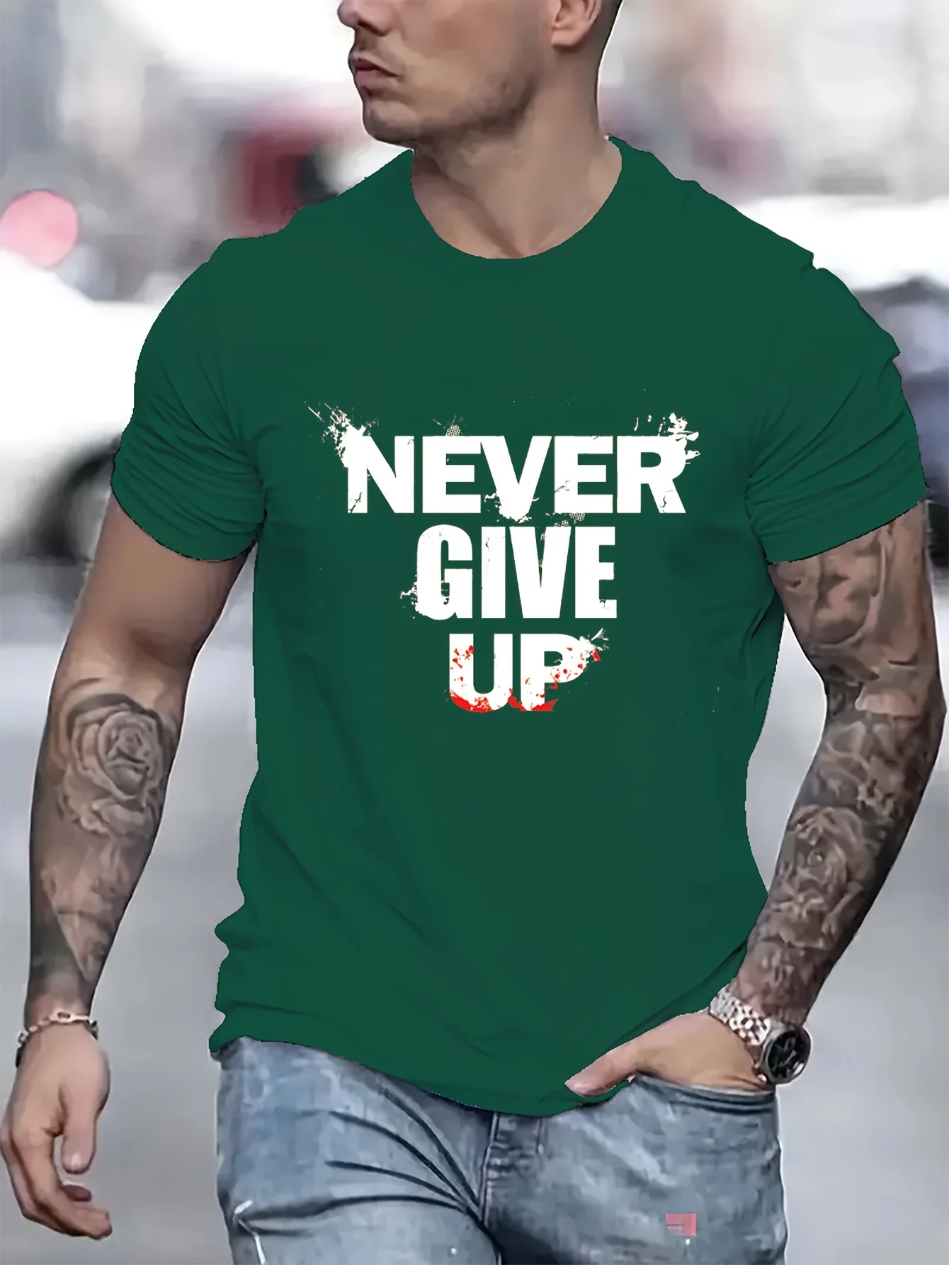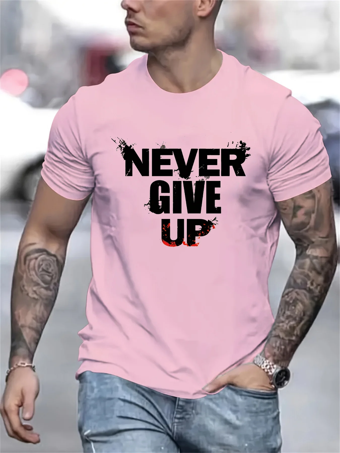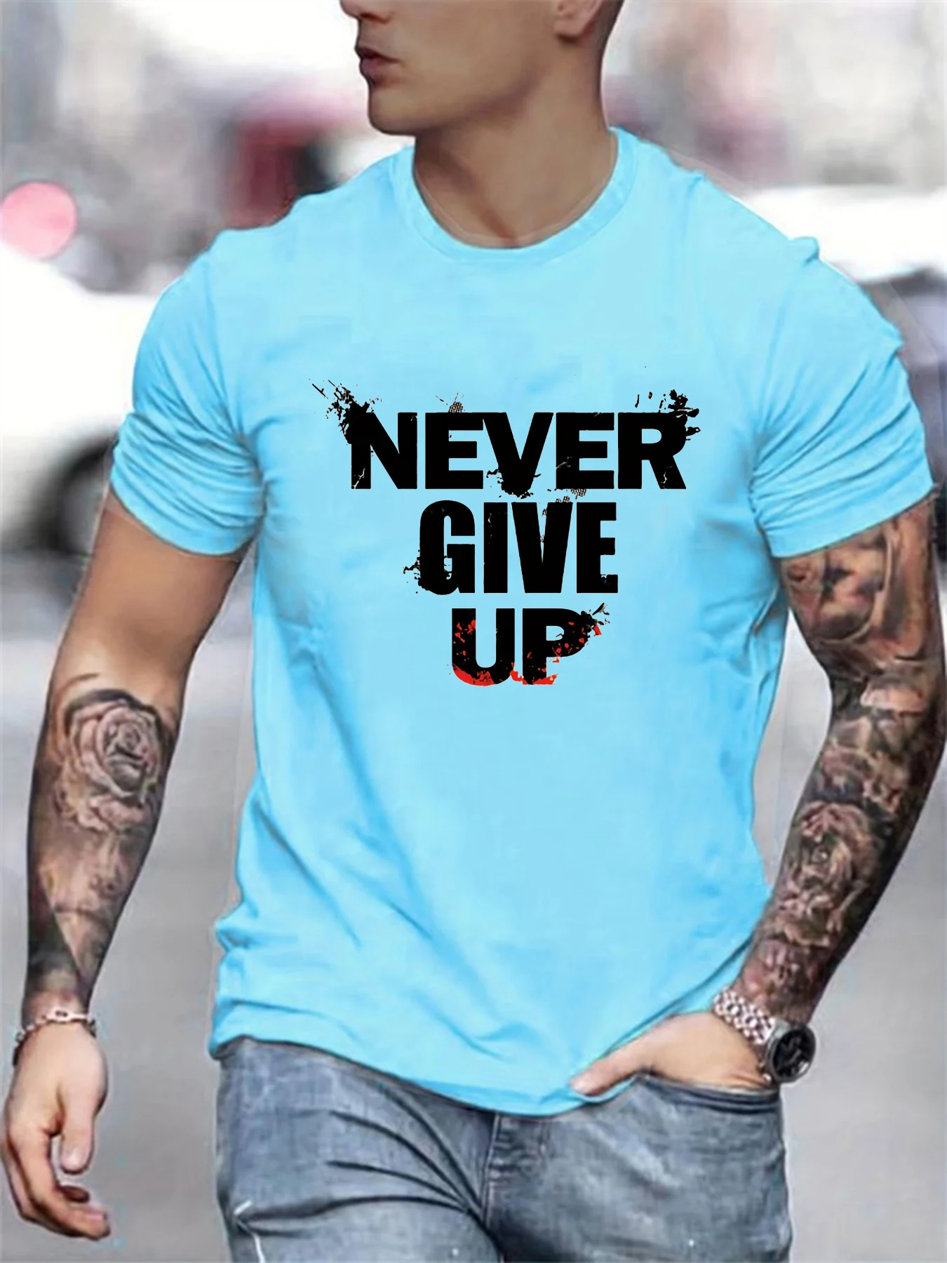 Men's summer 100 cotton fashionable casual sports loose NEVER GIVE UP letter printed round neck short sleeved T-shirt top
