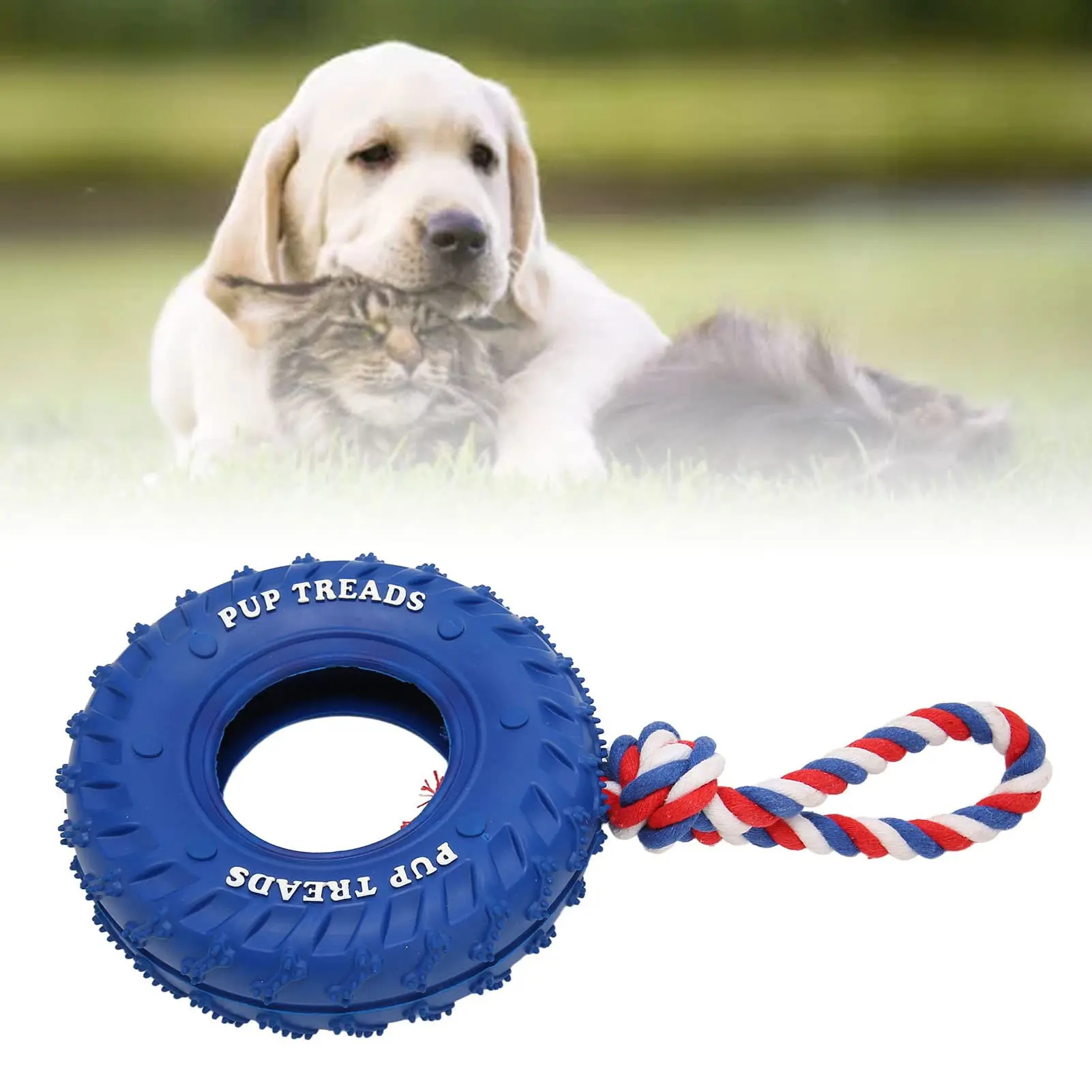 Natural Rubber Tire and Organic Cotton Rope Pull and Chew Dog Toy Heavy Duty Dog Tire Chewing Toy for Large Breed War Toy