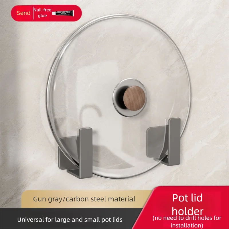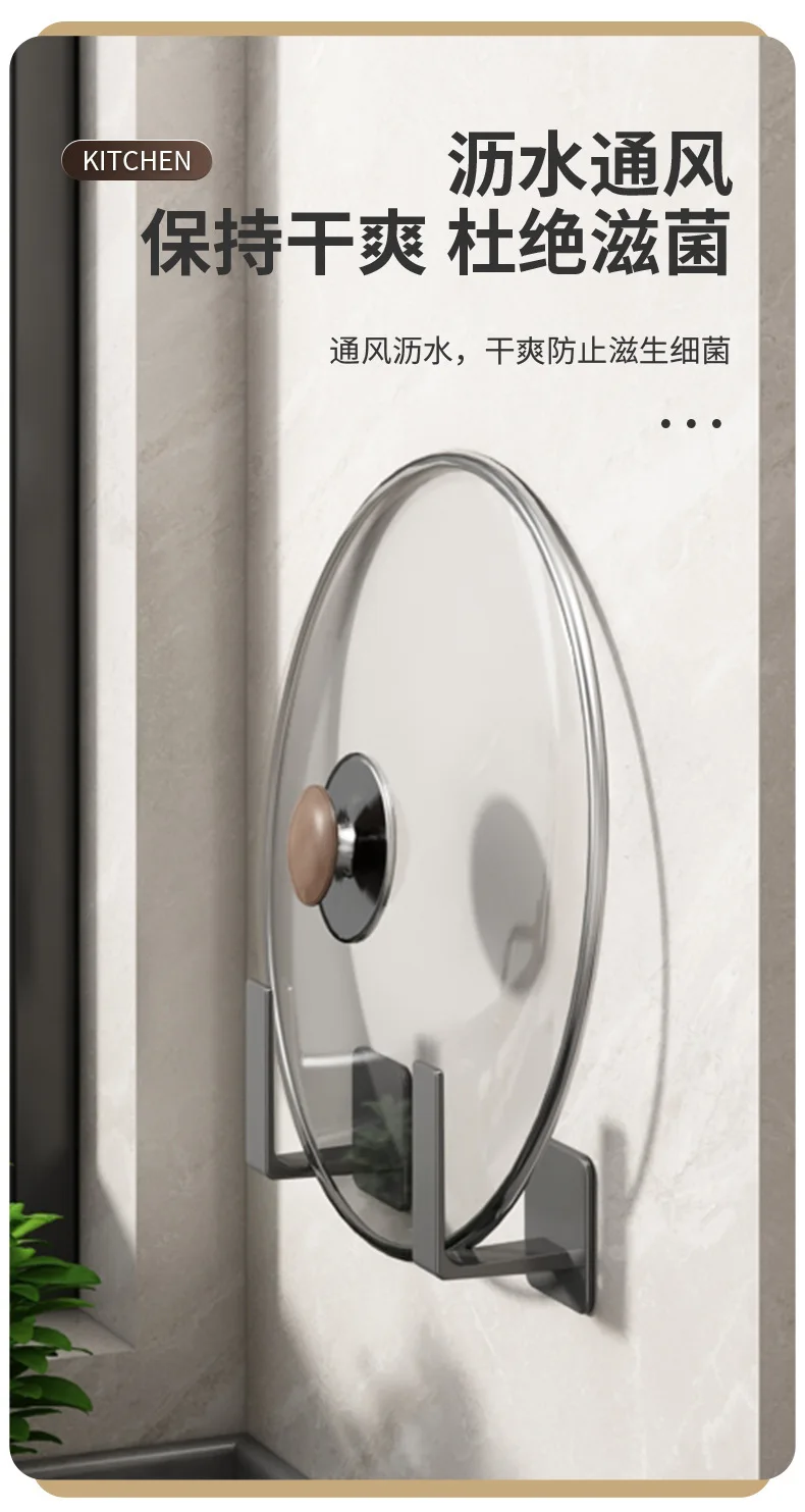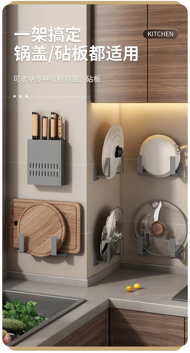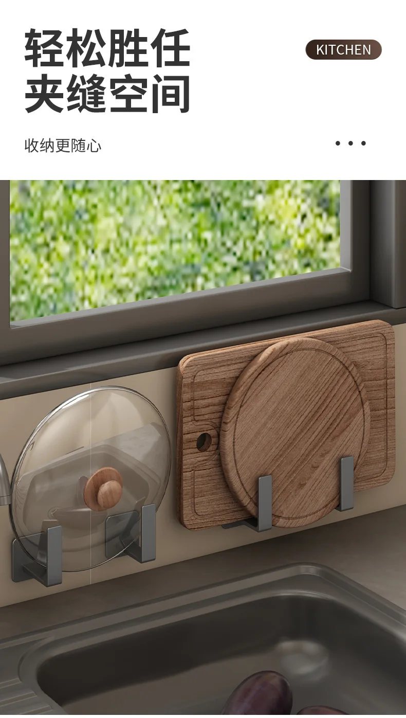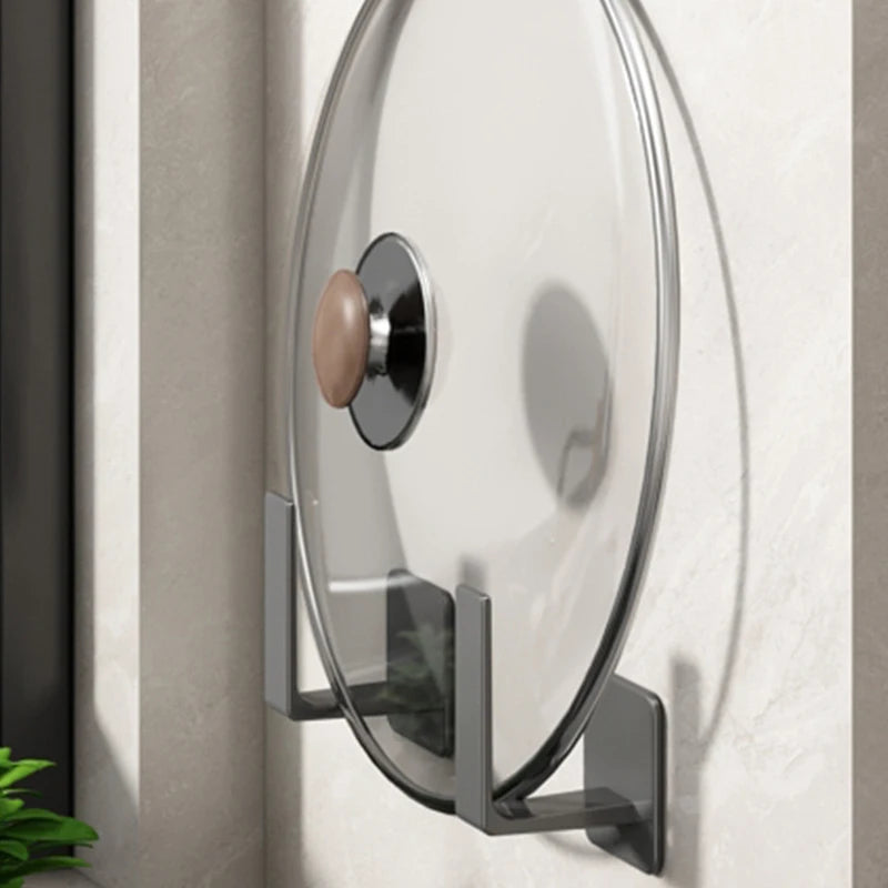 No-Drill Pot Lid Holder - Wall Mounted Kitchen Organizer, Multi-Functional Cutting Board Storage & Cookware Shelf