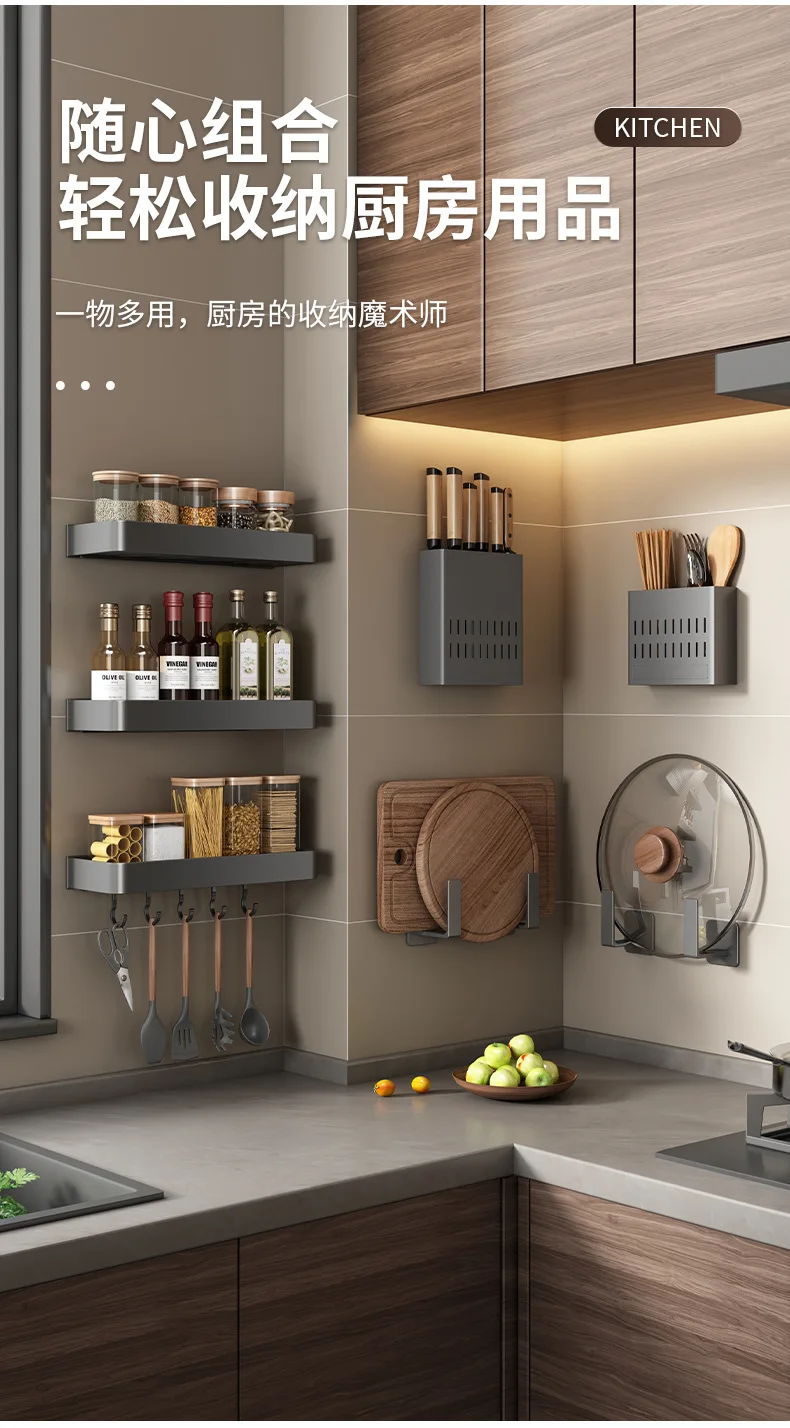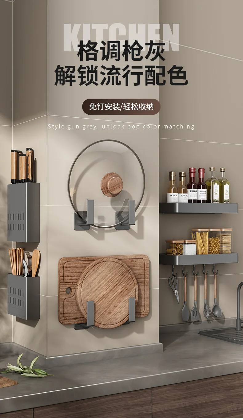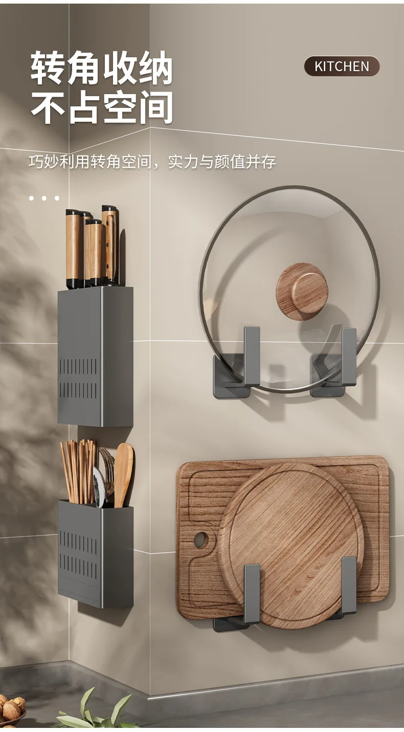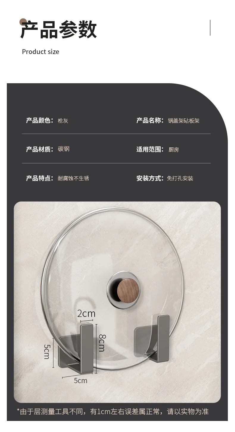 No-Drill Pot Lid Holder - Wall Mounted Kitchen Organizer, Multi-Functional Cutting Board Storage & Cookware Shelf