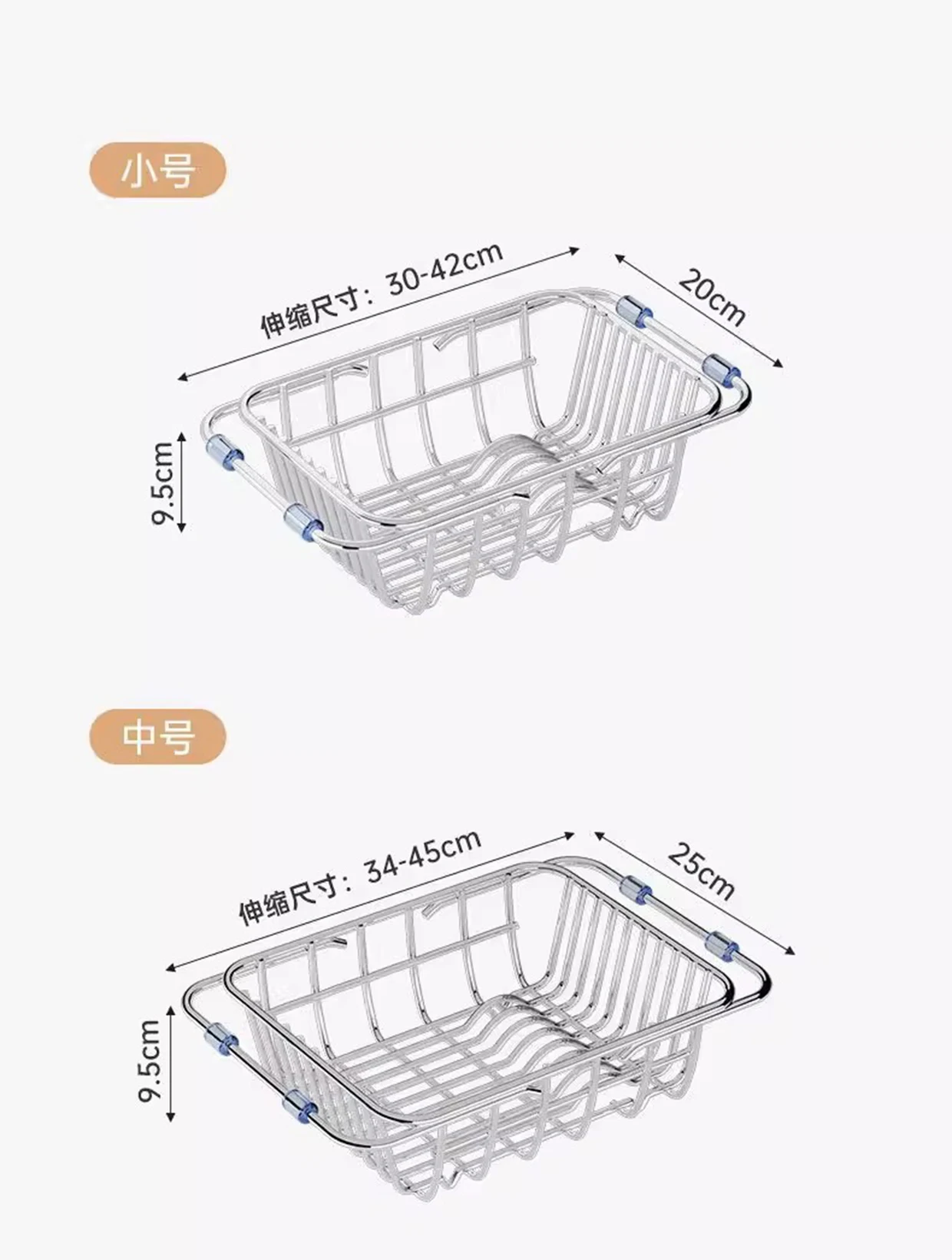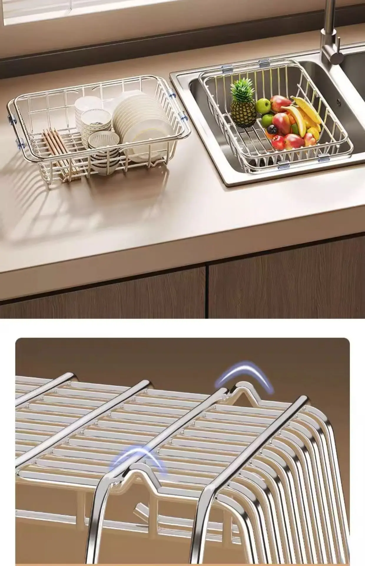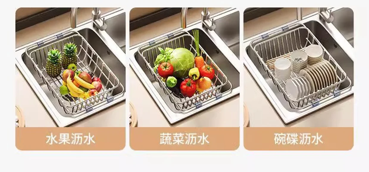 Telescopic Stainless Steel Sink Drain Basket Dishwashing Rack Kitchen Storage Organizer for Utensils And Dishes