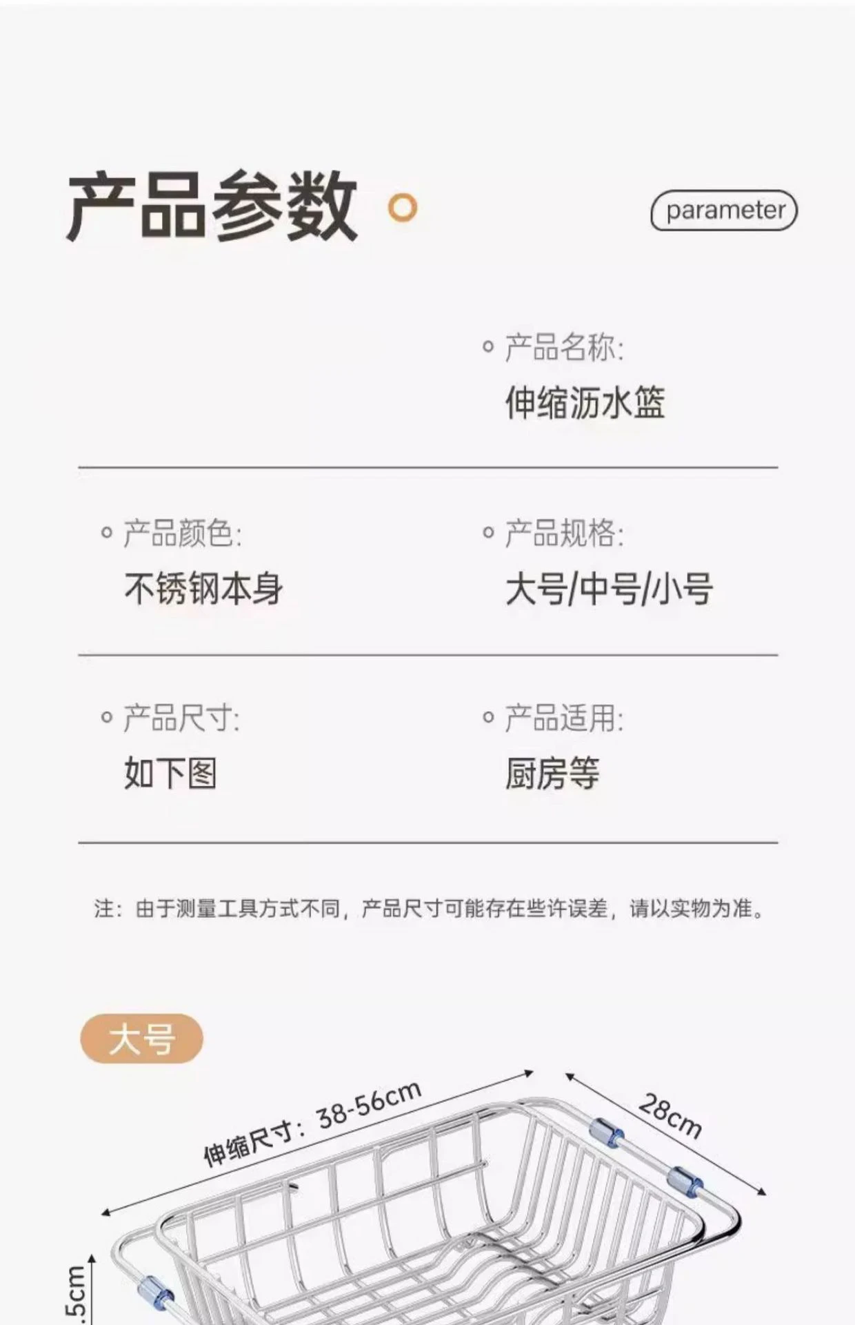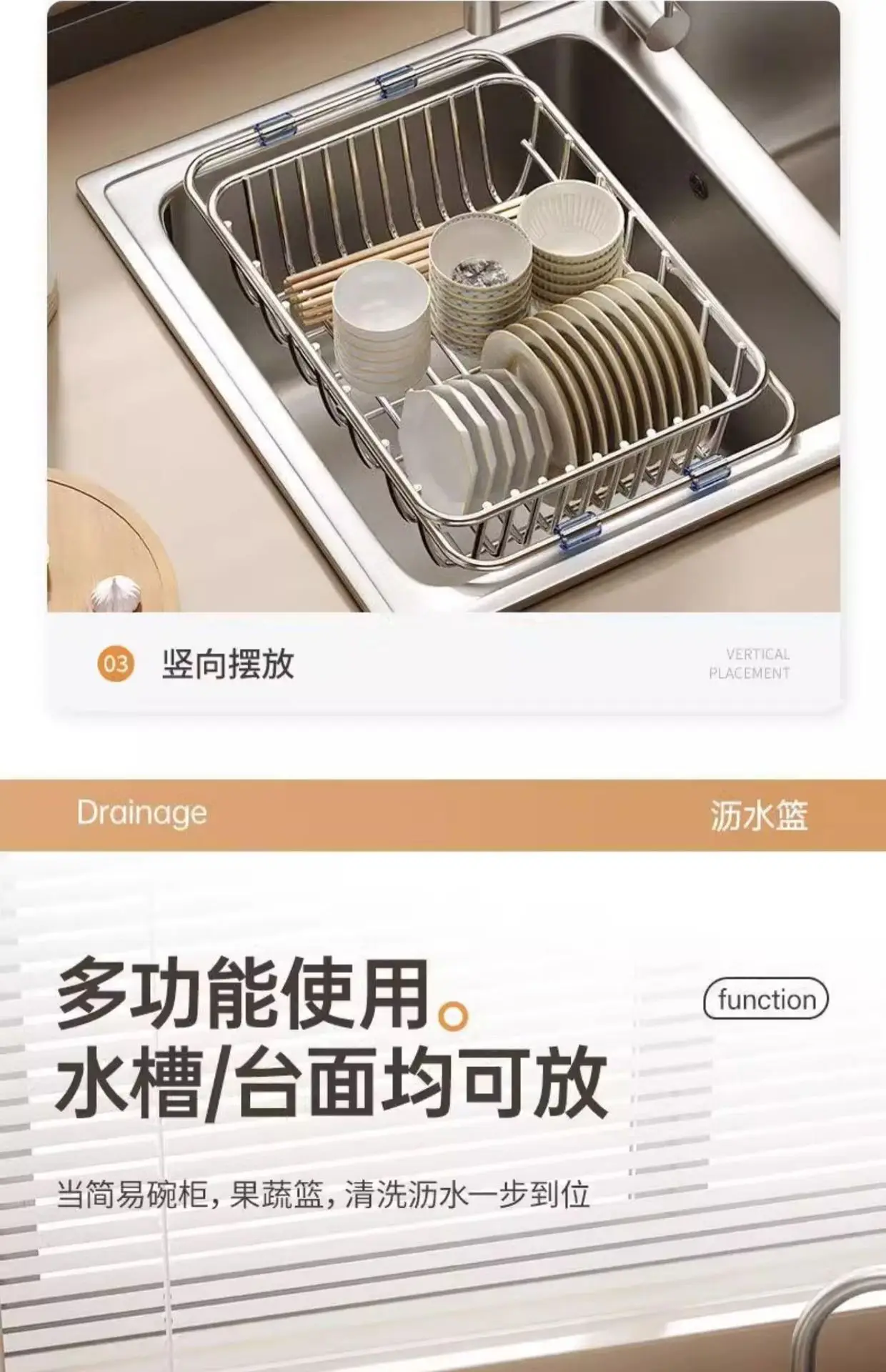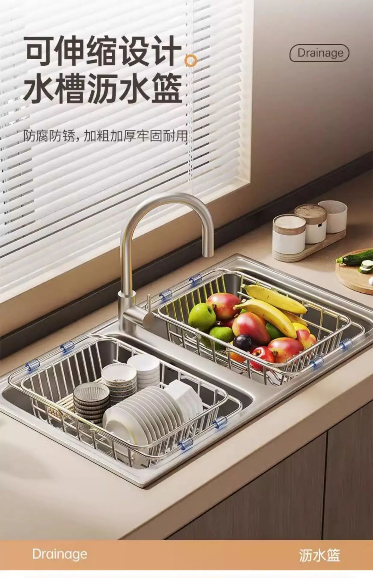 Telescopic Stainless Steel Sink Drain Basket Dishwashing Rack Kitchen Storage Organizer for Utensils And Dishes