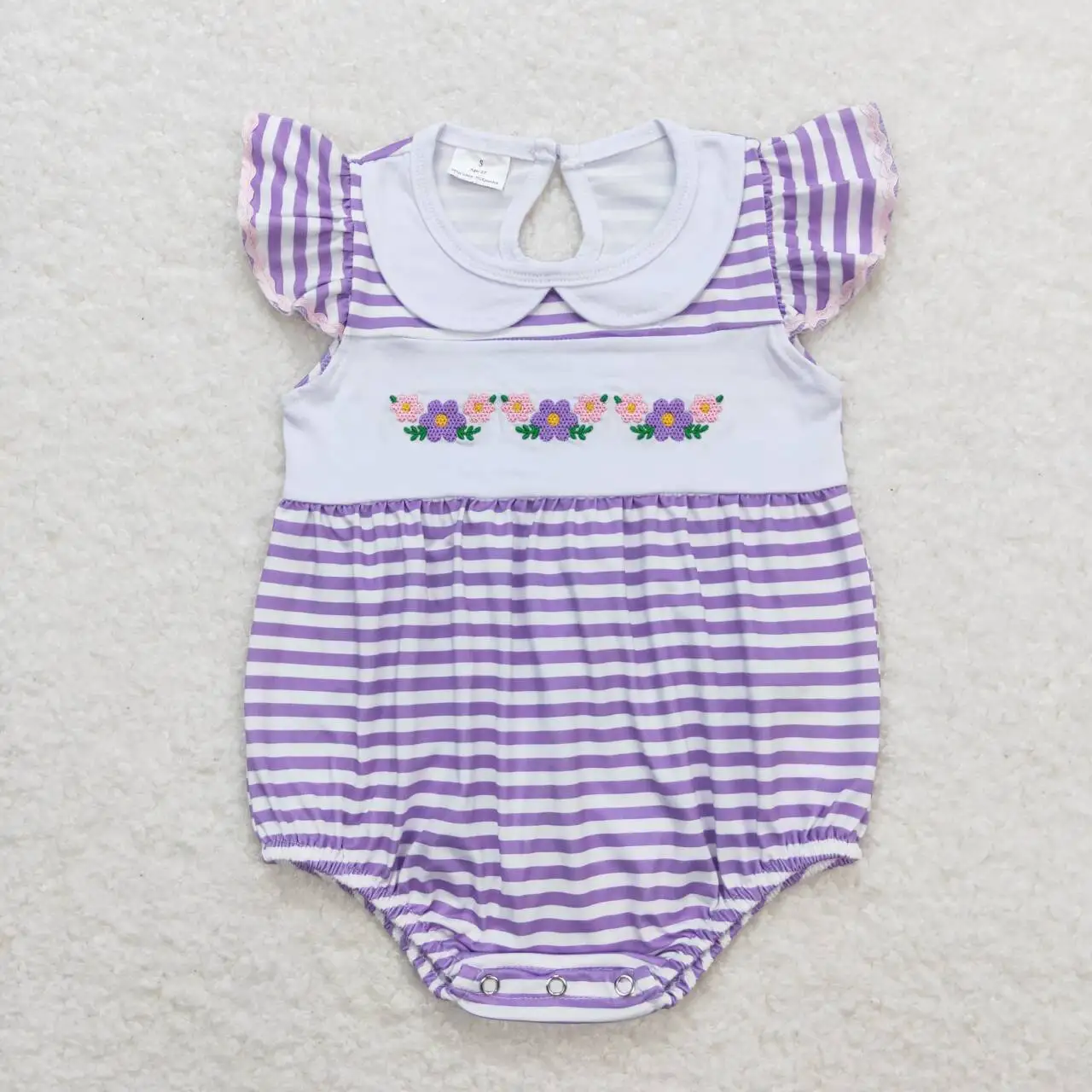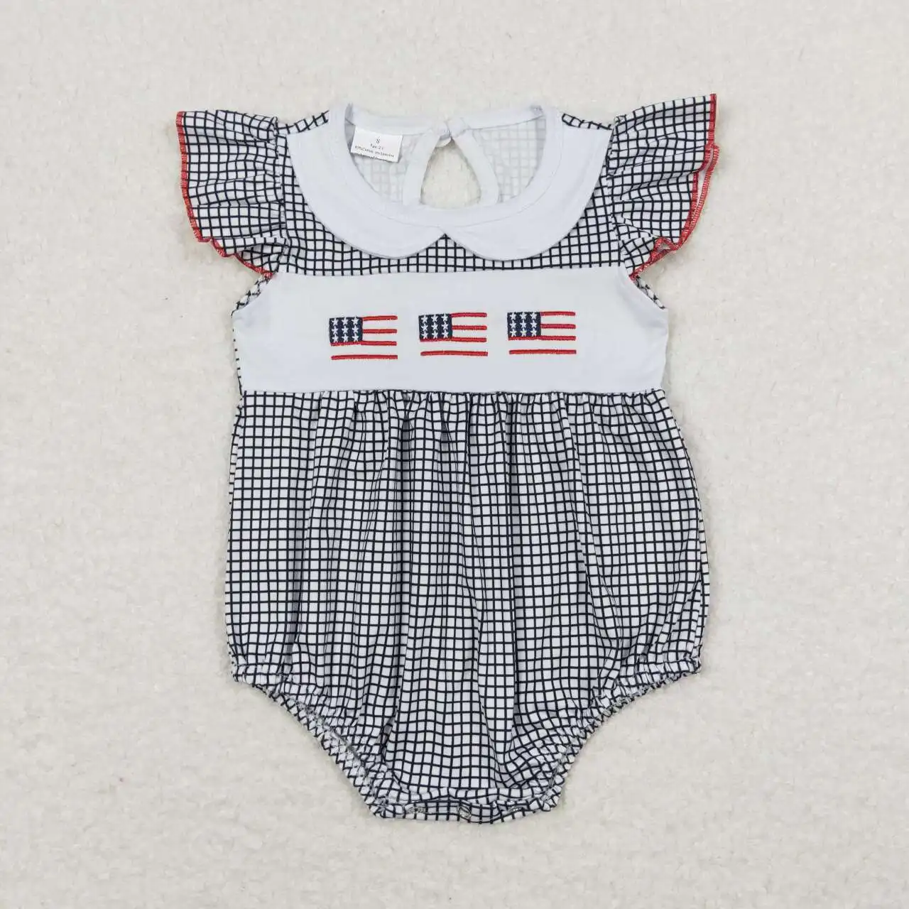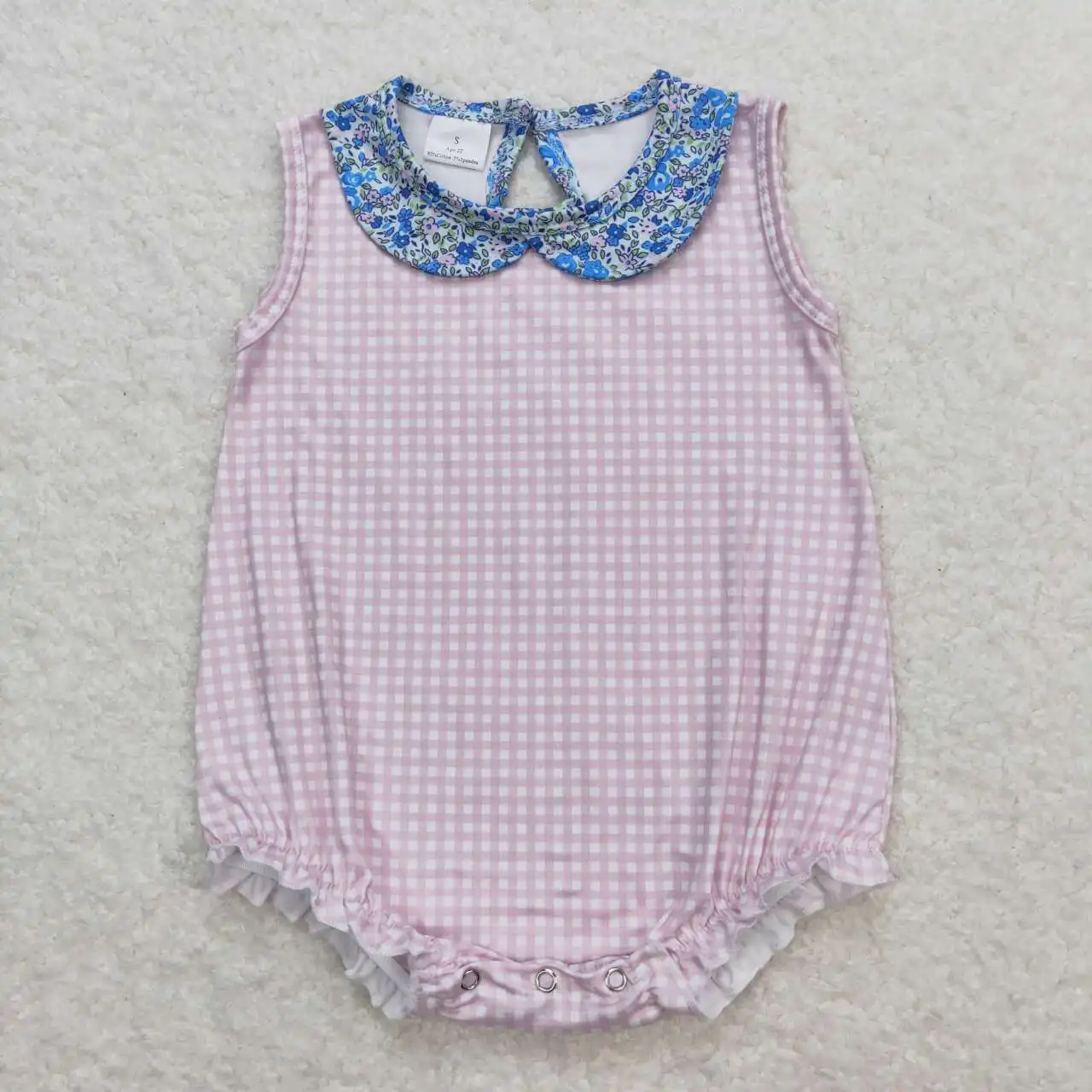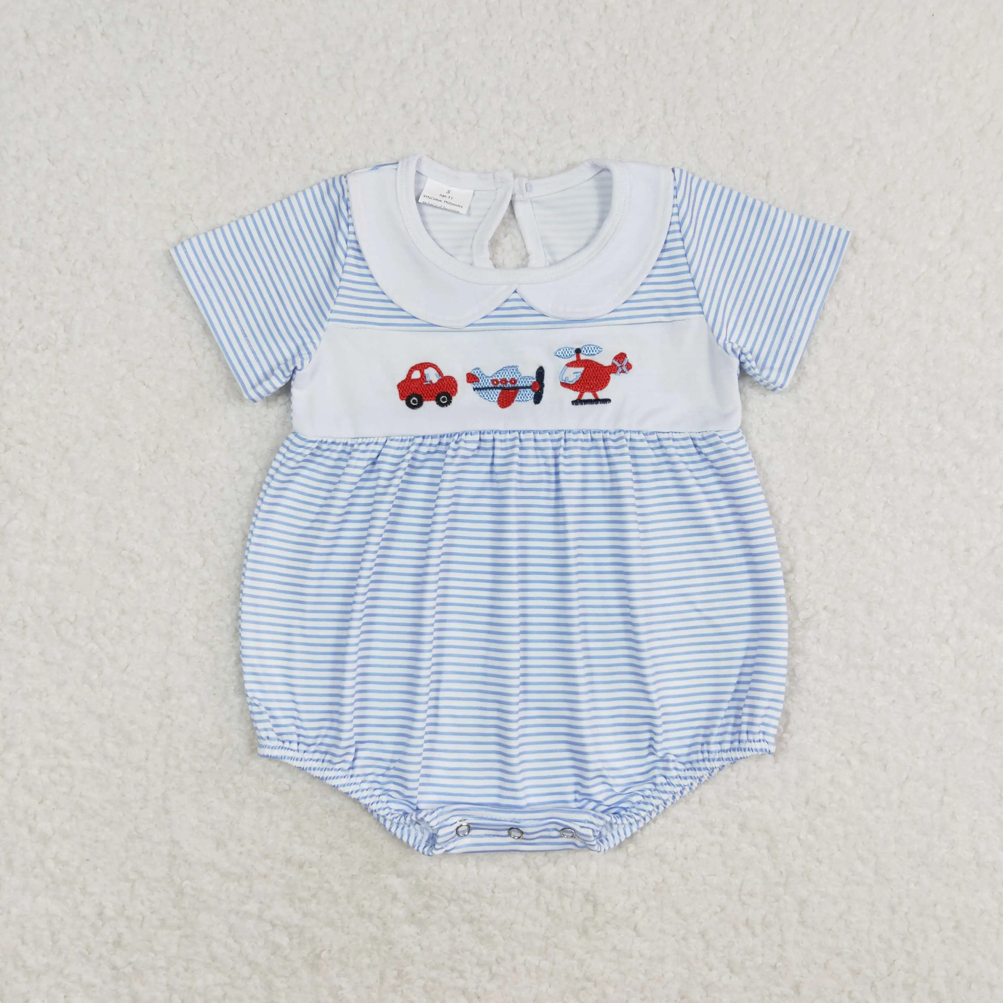 Wholesale Baby Girl Newborn Car Plane Romper Bubble Embroidery Blue Plaid Bow Jumpsuit Kid Toddler Summer One-piece Clothes